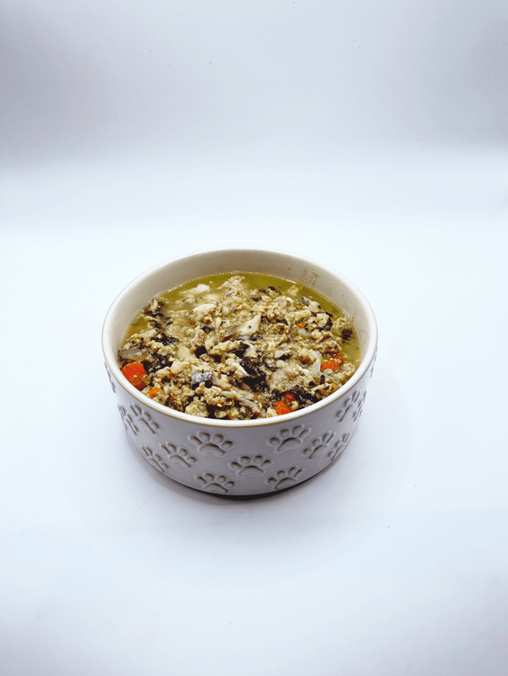 DO NOT drain the water from sardines before use. In a separate bowl, add the sardines and break them up into smaller pieces. Then, add the flaxseed oil and the nutrition pack. Combine this mixture with the cooked ingredients from your chosen method. Do not drain excess liquid after mixing (contains important nutrients for your pup!)